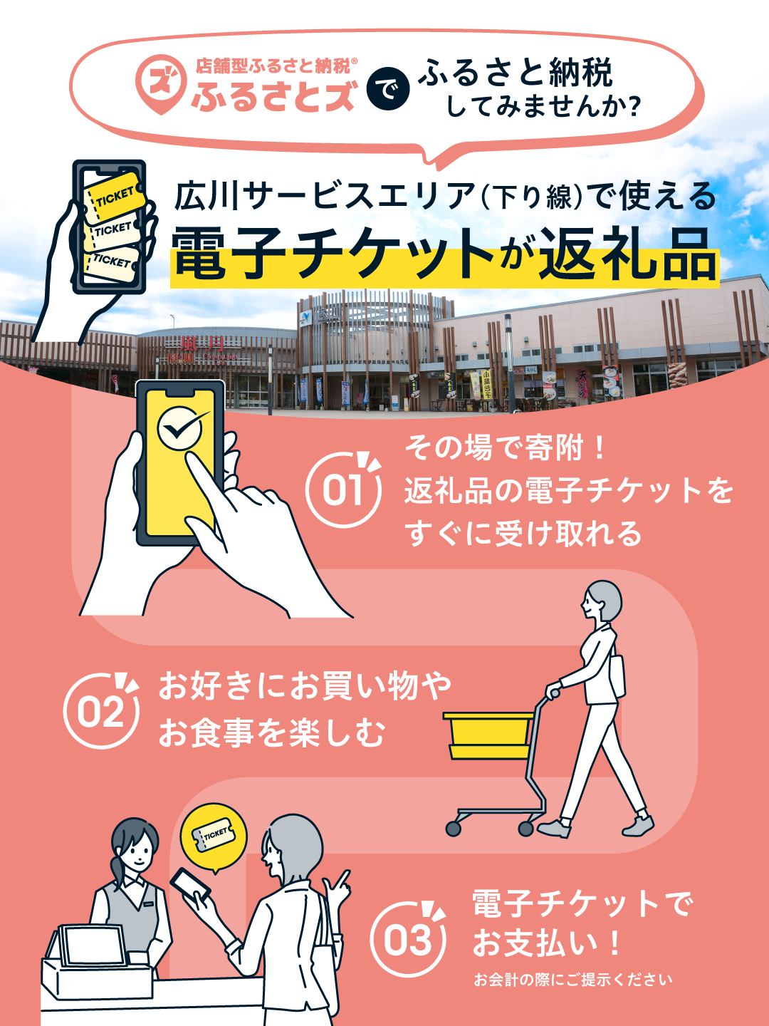 「広川サービスエリア下り線」内の対象店舗でご利用いただける電子チケット【5,000円分】(1,000円×5枚)