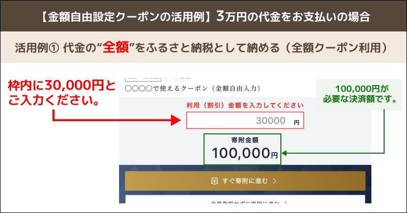 例)利用金額 30,000円→寄附金額 100,000円