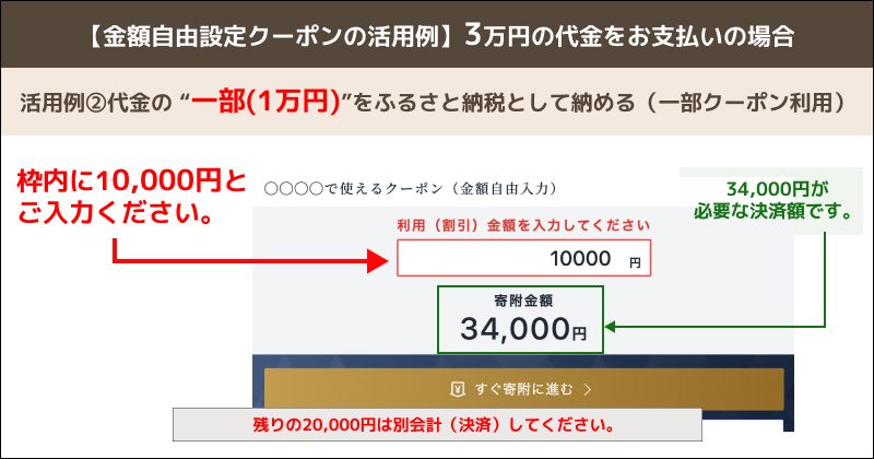 ※利用金額の欄は1円単位で自由に入力いただくことができ、その際「寄附金額」は自動計算されます。