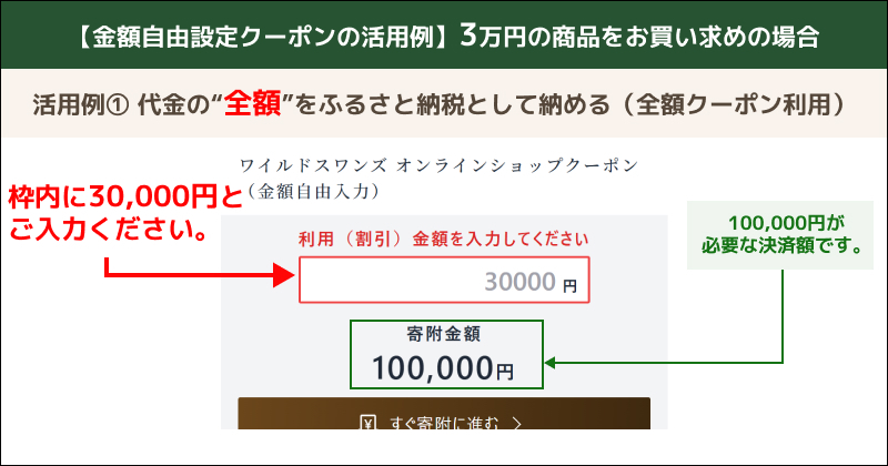 利用金額 30,000円→寄附金額 100,000円