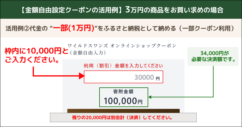 ※利用金額の欄は1円単位で自由に入力いただくことができ、その際「寄附金額」は自動計算されます。